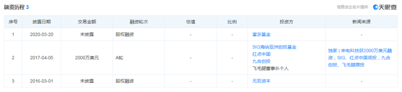 但比起“三電一獸”的其他三家,來電科技似乎并不受資本青睞。天眼查信息顯示,自成立至今,來電科技共完成三輪融資,投資方包括富浙基金、SIG海納亞洲創(chuàng)投基金、紅點中國、九合創(chuàng)投、飛毛腿董事長個人、無雙資本等。