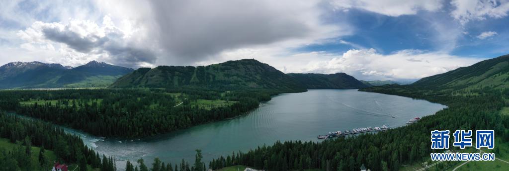 6月10日拍攝的新疆阿勒泰地區(qū)喀納斯景區(qū)喀納斯湖景色(無人機(jī)照片)。