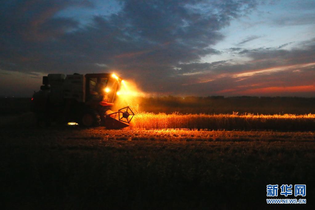 6月19日,收割機(jī)在山東省青島市即墨區(qū)段泊嵐鎮(zhèn)葉家宅科村的麥田內(nèi)作業(yè)。