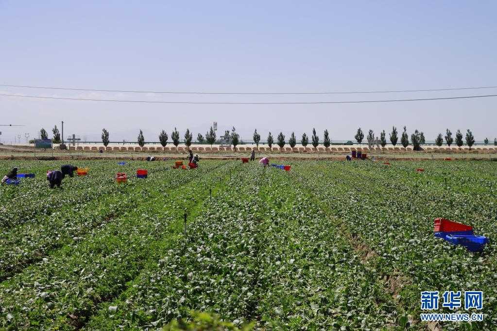 7月4日,在甘肅省張掖市甘州區(qū)烏江鎮(zhèn)供港蔬菜基地,當(dāng)?shù)厝罕娫诓烧卟恕?/p>