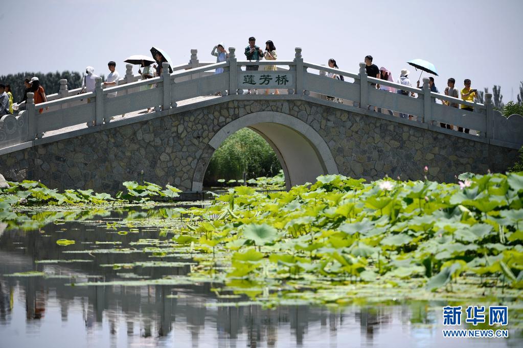 近日,位于寧夏銀川市興慶區(qū)的鳴翠湖國(guó)家濕地公園荷花競(jìng)相開(kāi)放,吸引眾多游客前來(lái)賞花、避暑。