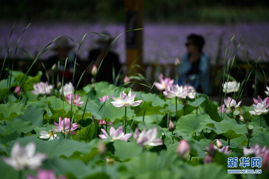 近日,位于寧夏銀川市興慶區(qū)的鳴翠湖國(guó)家濕地公園荷花競(jìng)相開放,吸引眾多游客前來賞花、避暑。
