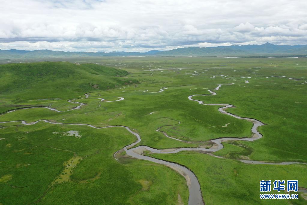 這是7月15日拍攝的瑪曲縣阿萬倉濕地(無人機照片)。