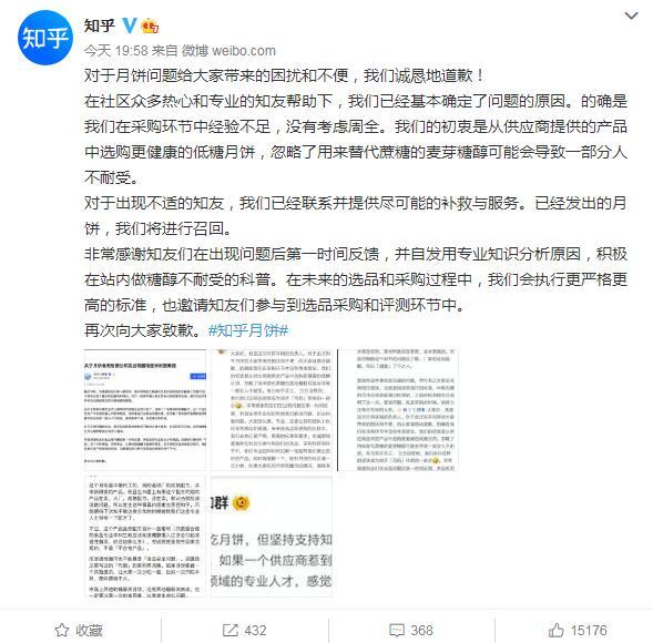 9月8日晚間,對于部分知友食用月餅后出現(xiàn)腹瀉癥狀一事,知乎在官方微博發(fā)文致歉。