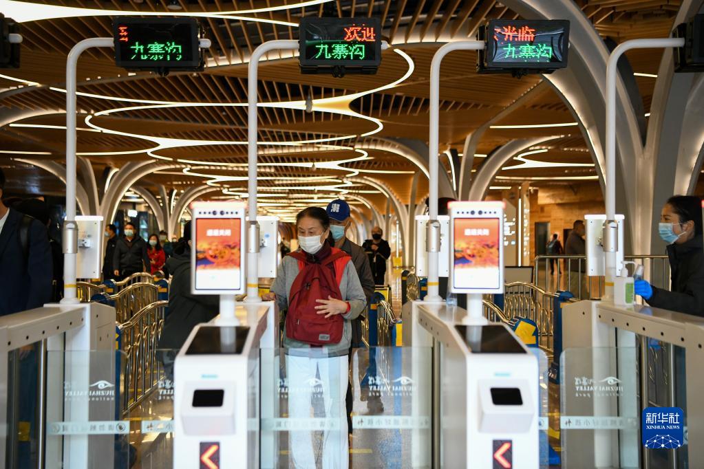 9月28日,在四川省九寨溝景區(qū),游客通過智能檢票口。
