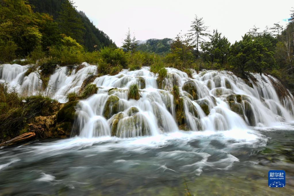 這是9月27日在四川省九寨溝景區(qū)拍攝的樹正瀑布。