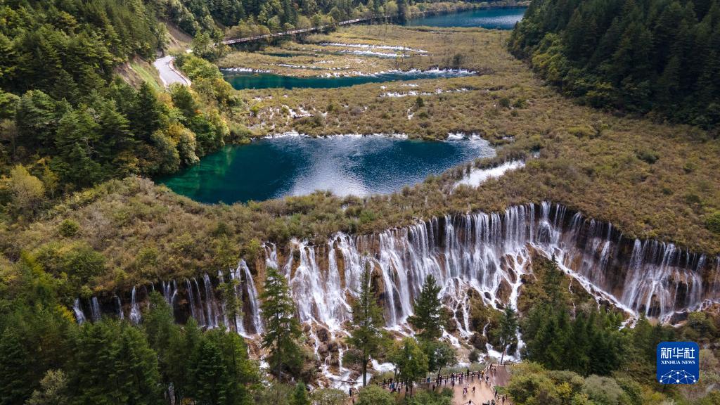 這是9月27日在四川省九寨溝景區(qū)拍攝的諾日朗瀑布(無(wú)人機(jī)照片)。