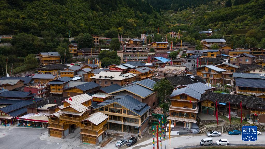 這是9月27日在四川省九寨溝景區(qū)拍攝的樹正藏寨(無人機照片)。