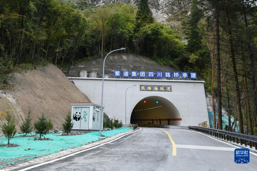 這是9月27日在四川省九寨溝景區(qū)拍攝的震后新修建的熊貓海隧道。