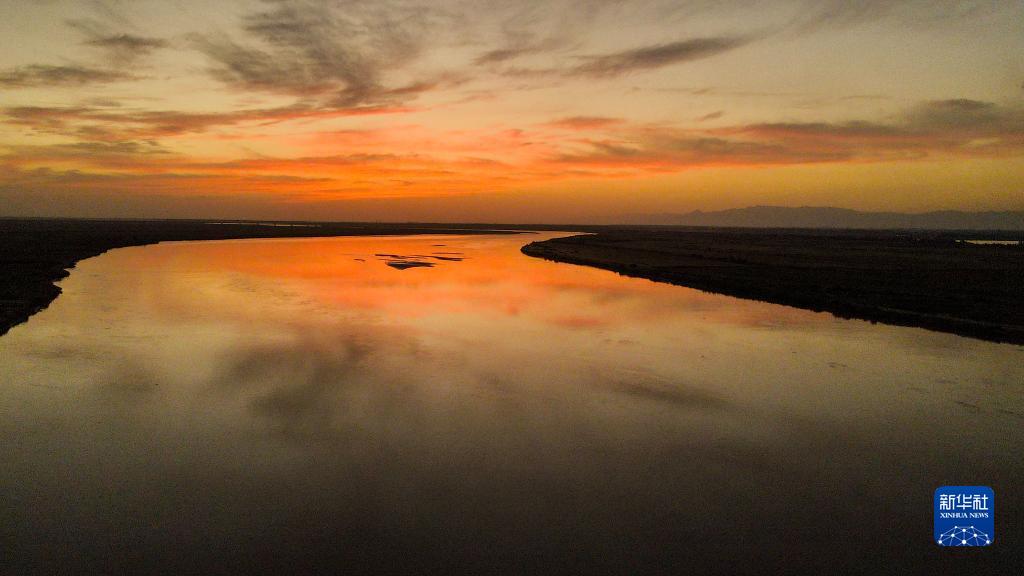 這是在內(nèi)蒙古鄂爾多斯市達(dá)拉特旗境內(nèi)拍攝的黃河夕照景觀(9月26日攝,無人機(jī)照片)。