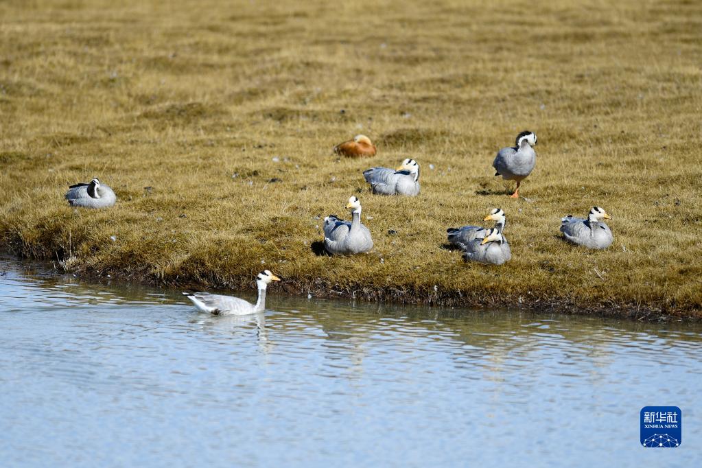 這是10月19日在三江源國家公園黃河源園區(qū)內(nèi)拍攝的一群斑頭雁。