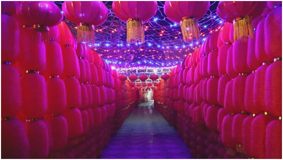 特克斯縣大街小巷、公園綠地張燈結(jié)彩,五彩繽紛的彩燈,營造出錯落有序、層次鮮明的亮麗夜景。走進(jìn)網(wǎng)紅景點(diǎn)離街,布滿了一串串火紅的燈籠、一組組璀璨的燈光秀,五彩的世界令人目不暇接,婀娜多姿的舞者、絢麗多彩的孔雀、翩翩起舞的蝴蝶,每一盞都耀眼奪目。游人行走其中如癡如醉。大型建筑物變幻各具特色“歡慶新年”元素,烘托出新春氛圍和濃濃的年味。