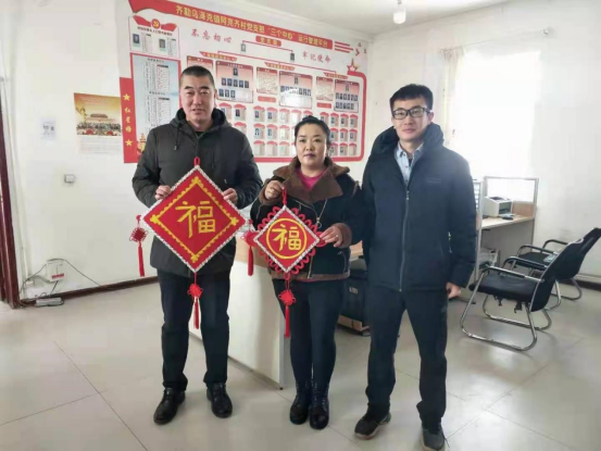 “平時社會上的愛心人士和村委會、‘訪惠聚’工作隊給予我們很多的關愛。春節(jié)到了,我親手編了刺繡‘?!郑徒o他們,希望大家新年更幸福?!碧乜怂箍h齊勒烏澤克鎮(zhèn)阿克齊村村民刺繡合作社經(jīng)理阿依古麗·葉爾肯拜,拿著一副紅紅的親手編的刺繡“?!弊炙徒o長期關愛群眾的工作隊隊員們的手中。