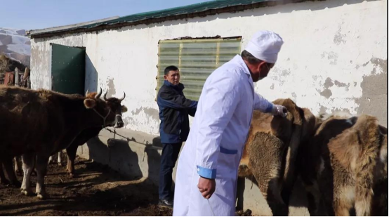 2月16日,在喬拉克鐵熱克鎮(zhèn)克孜闊拉村牧民沙木哈合·霍孫別克養(yǎng)殖區(qū),專業(yè)技術(shù)人員正在為新疆褐牛進(jìn)行冷配技術(shù)服務(wù)。看著技術(shù)人員為褐牛繁育提供上門服務(wù),沙木哈合·霍孫別克開心地說(shuō),“以前到牛冷配時(shí)間時(shí),我們總是自掏300元路費(fèi),去距28公里的鄉(xiāng)鎮(zhèn)或邀請(qǐng)相關(guān)技術(shù)人員進(jìn)行冷配??俗伍熇濉霸L惠聚”工作隊(duì)及村“兩委”了解我們的情況后,積極和鄉(xiāng)鎮(zhèn)對(duì)接,給克孜勒闊拉村分配了兩名技術(shù)人員,解決了我們村牛冷配難的問(wèn)題。”