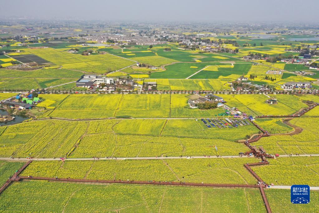 3月8日在四川省廣漢市高坪鎮(zhèn)李堰村拍攝的油菜花田(無人機(jī)照片)。