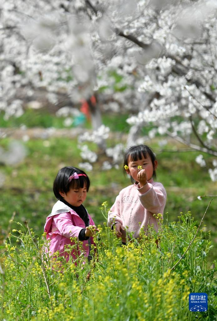 3月6日,小朋友在甘肅省隴南市武都區(qū)城關(guān)鎮(zhèn)石家莊村的種植園內(nèi)游玩。