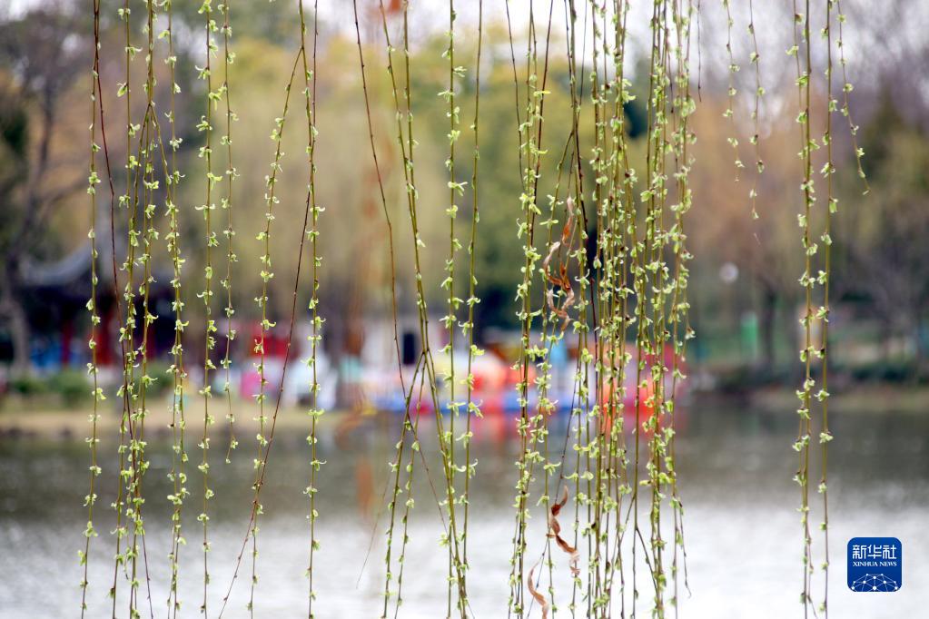 這是3月7日在江蘇蘇州東園拍攝的吐出嫩芽的垂柳。
