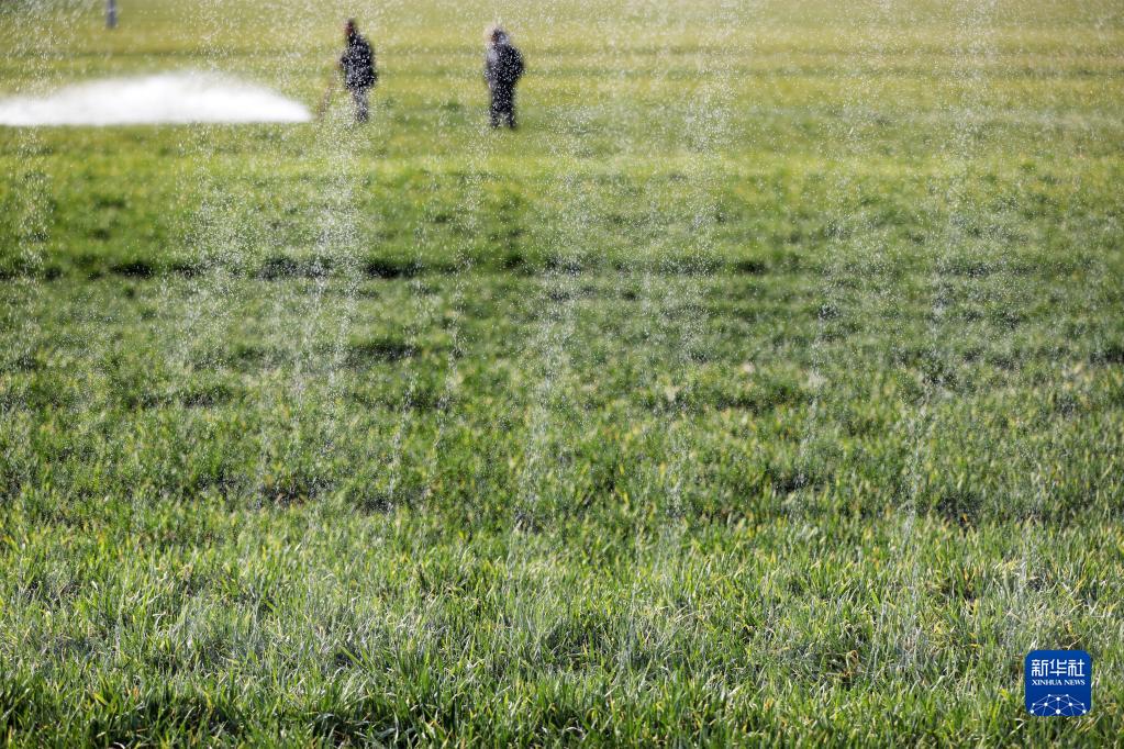 3月7日,山東省臨沂市郯城縣郯城街道農(nóng)民在麥田勞作。