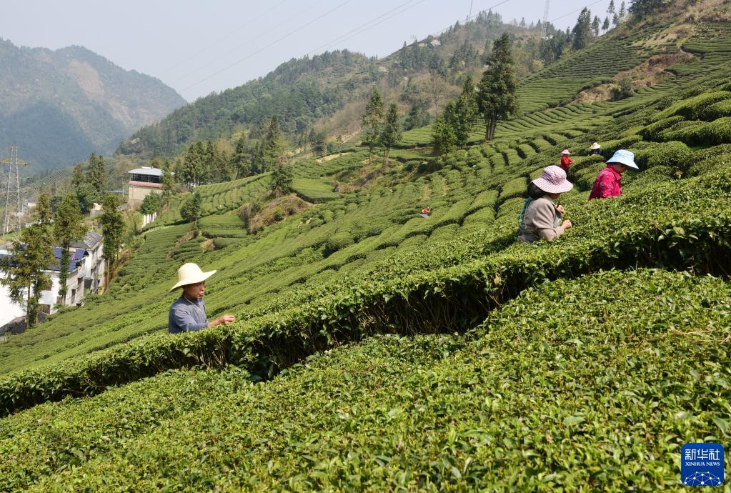 3月14日,湖北省恩施市芭蕉侗族鄉(xiāng)戽口村茶農采摘春茶。