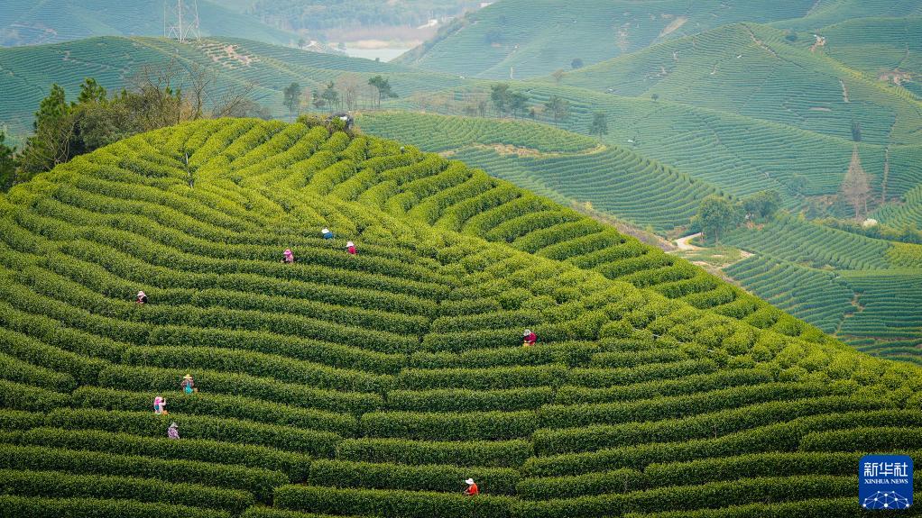 3月14日,浙江省湖州市長興縣和平鎮(zhèn)灘龍橋村茶農采摘春茶。