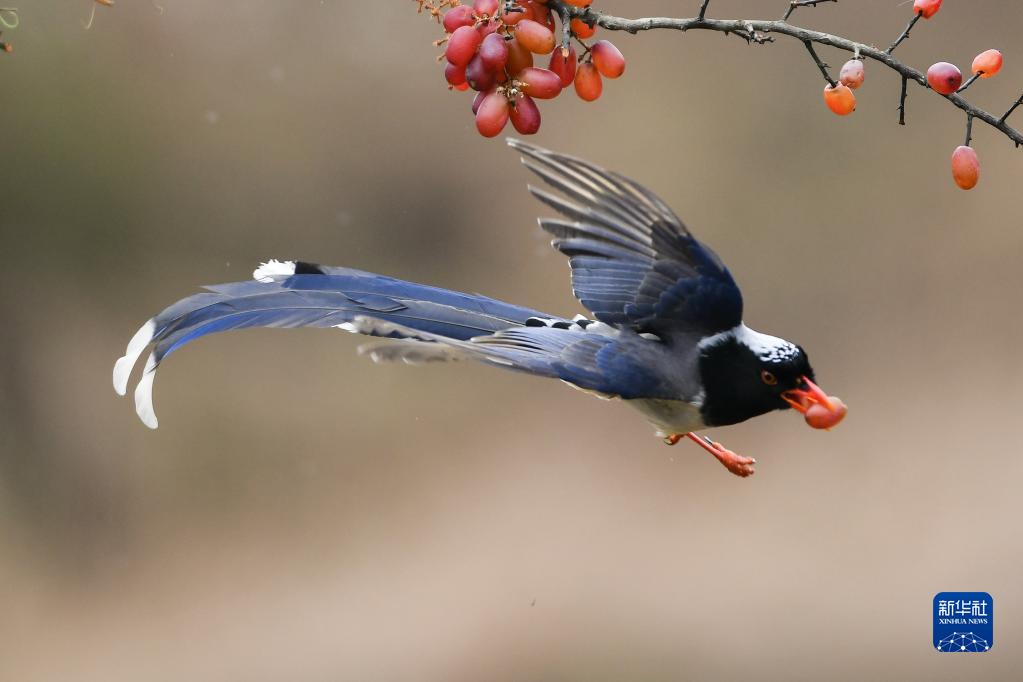 3月10日,在貴州省貴陽市觀山湖公園,一只小鳥在覓食。