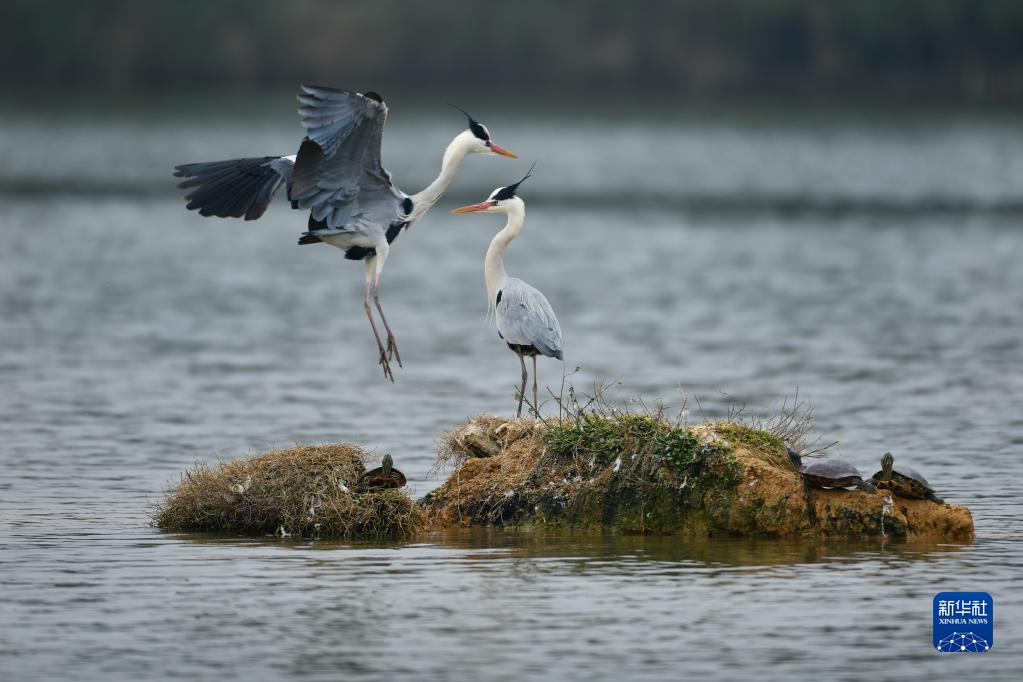 3月10日,在貴州省貴陽市觀山湖公園,兩只鳥兒在嬉戲。