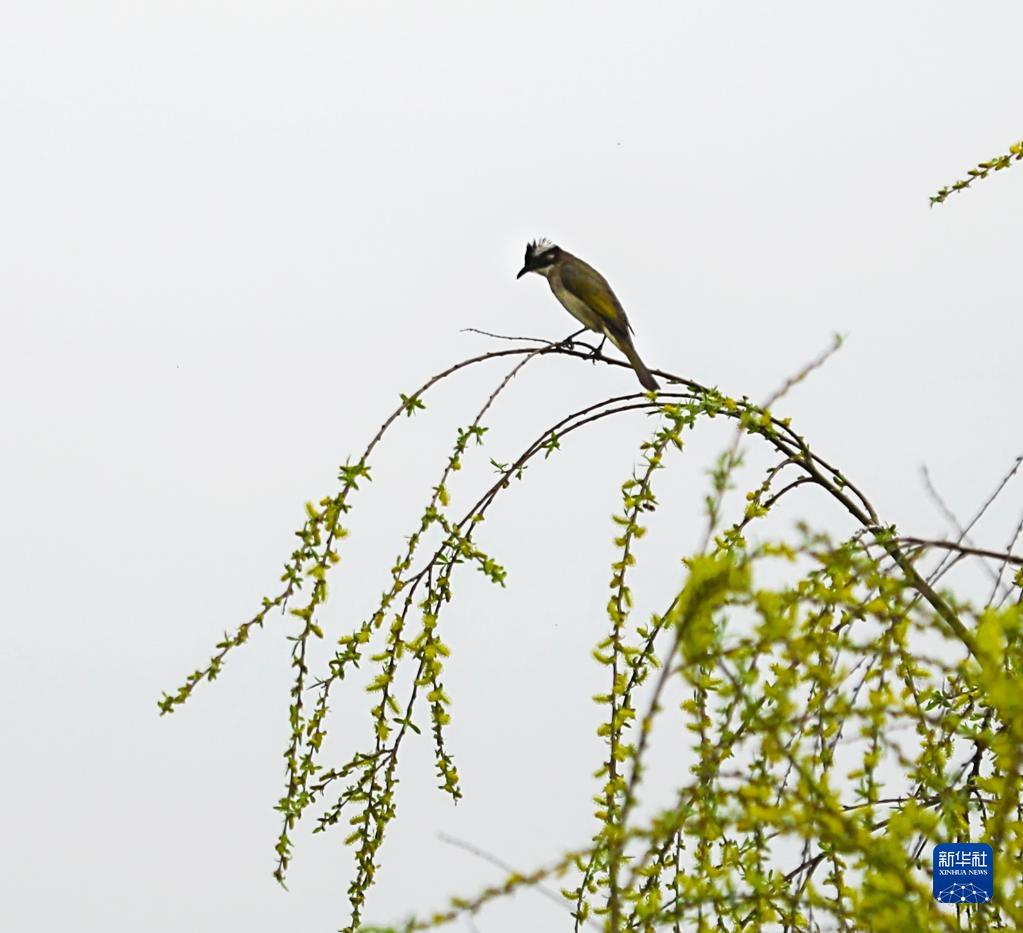 3月10日,在湖南省衡陽(yáng)市雁峰區(qū)湘江邊上,一只小鳥(niǎo)停留在柳樹(shù)枝上。