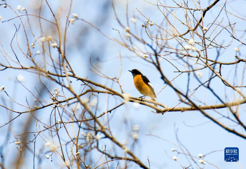 3月10日在江蘇南京拍攝的在枝頭棲息的小鳥。