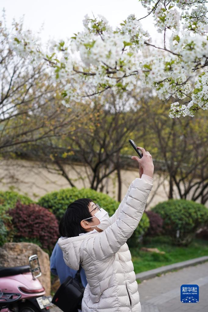 3月23日,游人在南京市雞鳴寺路賞花拍照。