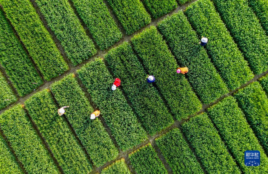 3月30日,在安徽省合肥市廬江縣白湖鎮(zhèn)省級(jí)現(xiàn)代農(nóng)業(yè)示范區(qū)育種基地,農(nóng)民在小麥育種田清除雜草。
