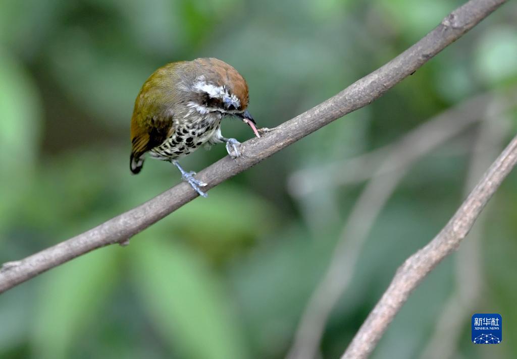 在福州金雞山公園,一只斑姬啄木鳥(niǎo)在覓食(3月29日攝)。