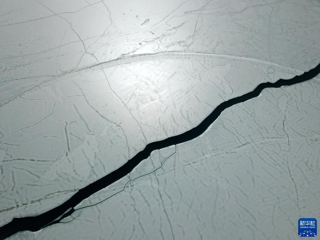這是4月5日拍攝的班公湖冰面(無人機照片)。由于湖體狹長,部分湖面仍未解凍。