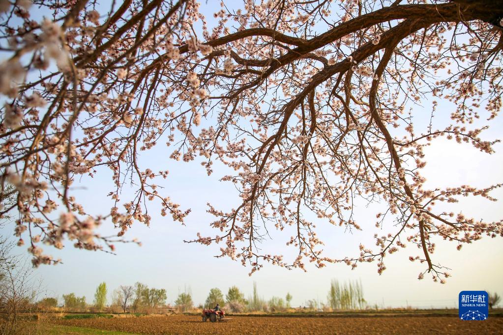 4月10日,在甘肅省酒泉市肅州區(qū)金佛寺鎮(zhèn),村民駕駛農(nóng)機(jī)翻耕土地。