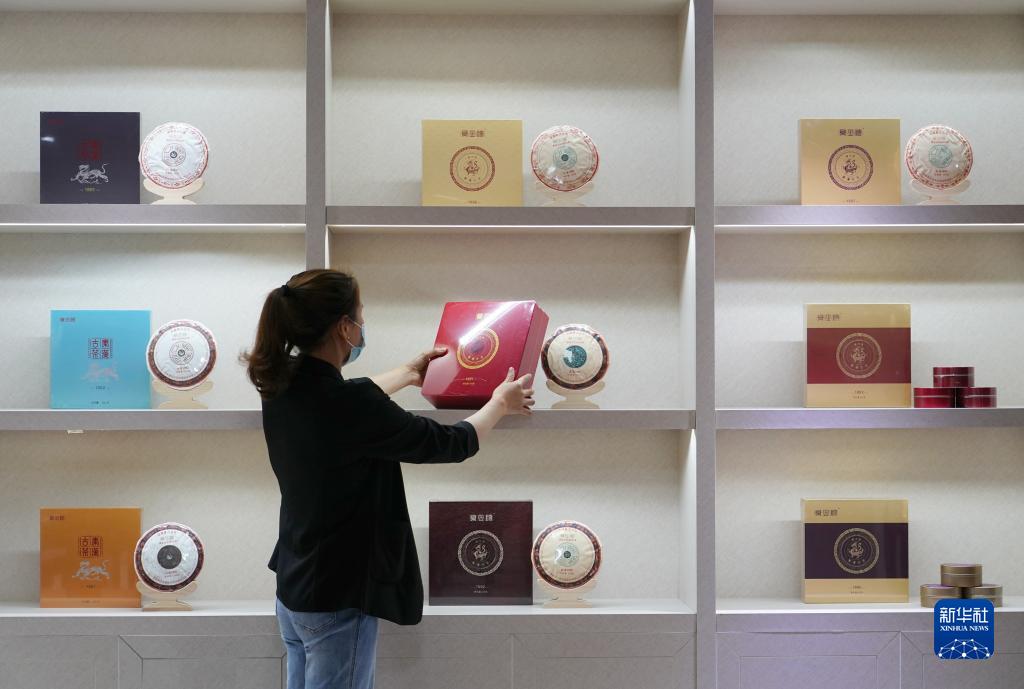 4月12日,游客在安康市平利縣廣佛鎮(zhèn)一家茶企內(nèi)挑選產(chǎn)品。