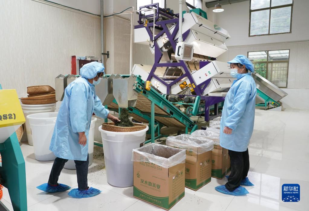 4月12日,在安康市平利縣一家茶業(yè)有限責(zé)任公司車間內(nèi),工作人員進(jìn)行茶葉精選作業(yè)。