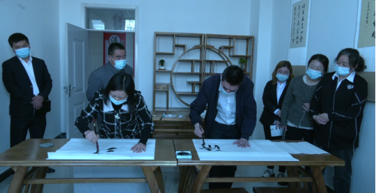 書(shū)法愛(ài)好者現(xiàn)場(chǎng)書(shū)寫(xiě)廉詞警句