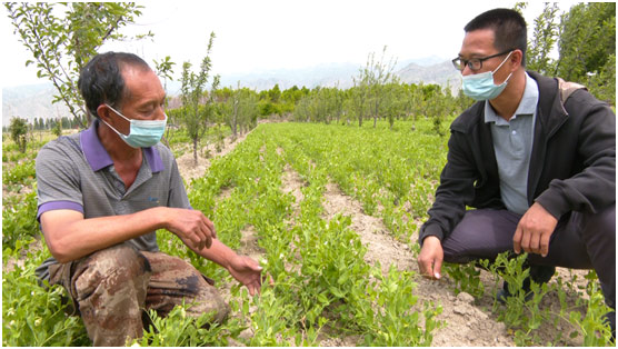 農(nóng)科院專家正在與自行培育老品種豌豆的村民進(jìn)行交流。