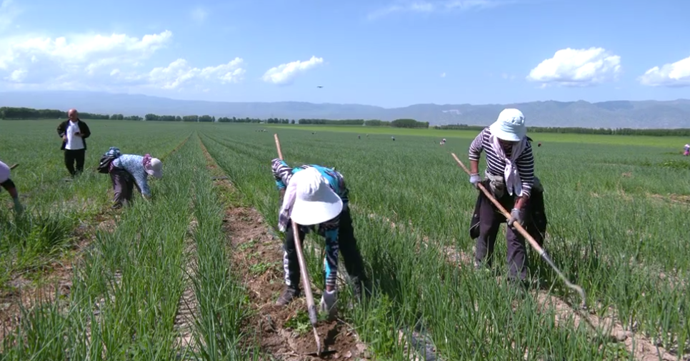 特克斯縣喬拉克鐵熱克鎮(zhèn)阿特恰比斯村村民黎澤輝說:“我們?cè)谘笫[地里除草務(wù)工有十天左右了,一天最多就有七八十人。一天能掙150元左右,洋蔥種植給我們阿特恰布斯村的老百姓增加了一筆收入,掙點(diǎn)零花錢,還是很不錯(cuò)的。”