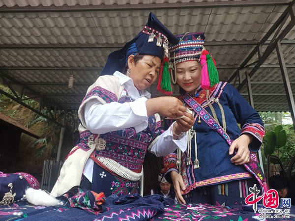 “我制作的服飾繡得最多是白鷴鳥及竜樹,白鷴鳥是哈尼人心目中的吉祥鳥,竜樹是哈尼人心中的神樹,我想把這些圖騰通過刺繡傳遞給人們?!辈跳P英說。