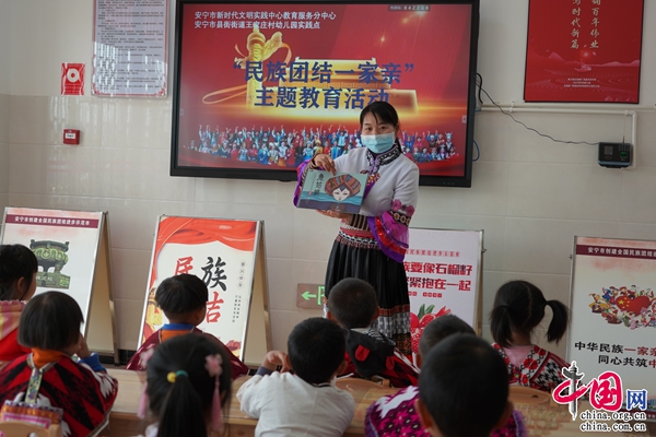 為了不斷增進幼兒對民族團結(jié)與友誼的認(rèn)識,加強孩子們對中華民族大家庭的了解,從小樹立維護民族團結(jié)、祖國統(tǒng)一的意識,一直以來,安寧市幼兒園堅持以黨建為引領(lǐng),充分發(fā)揮教育主陣地作用,把民族團結(jié)教育巧妙融入到孩子們喜聞樂見的活動中。