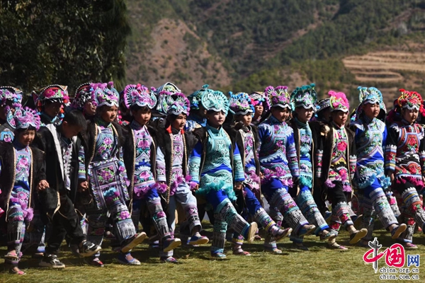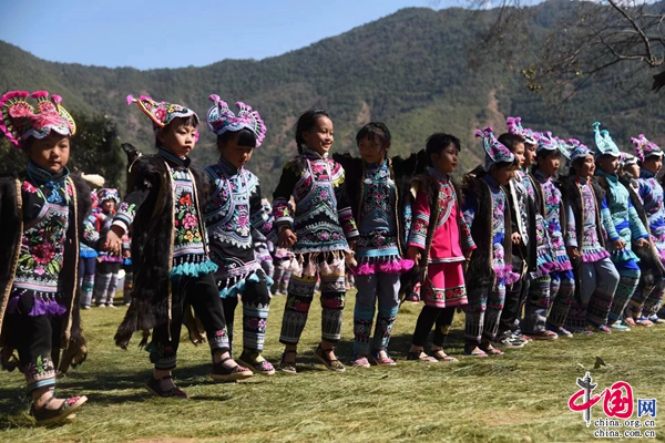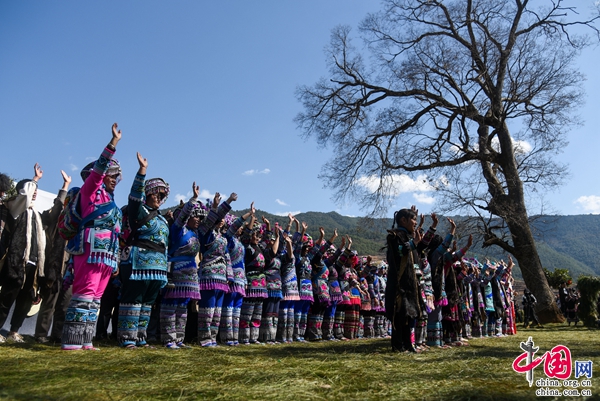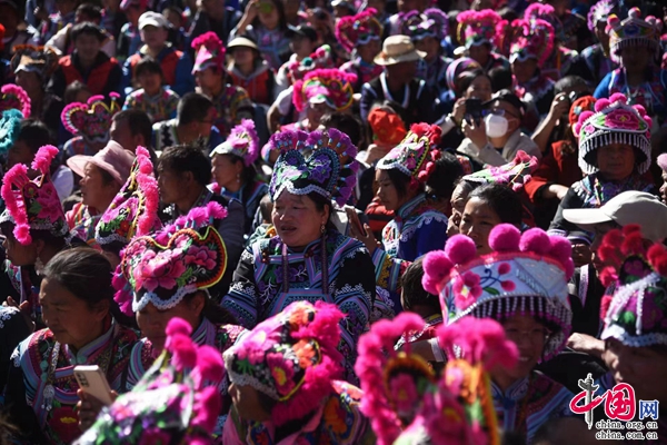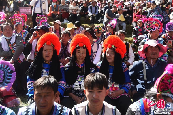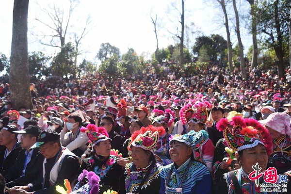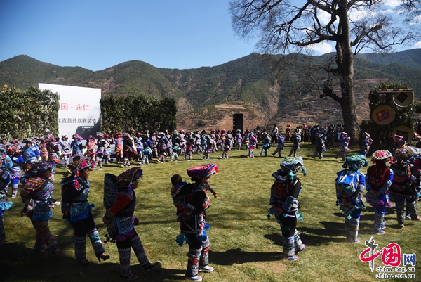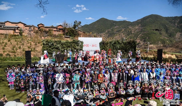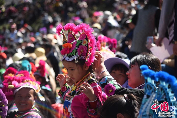 “夢(mèng)回千年·牽手時(shí)尚”,2月5日,中國(guó)·永仁2023直苴彝族賽裝節(jié)主題展演,在云南省楚雄彝族自治州永仁縣直苴村舉行。當(dāng)?shù)厝罕姾陀慰蜌g聚一堂、賽裝賽美,共度歡樂(lè)祥和的賽裝節(jié)和元宵佳節(jié)。