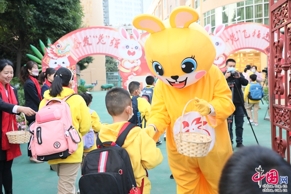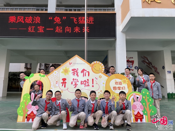 (育紅小學(xué)舉行以“乘風(fēng)破浪,‘兔’飛猛進——紅寶一起向未來”為主題的開學(xué)典禮。)