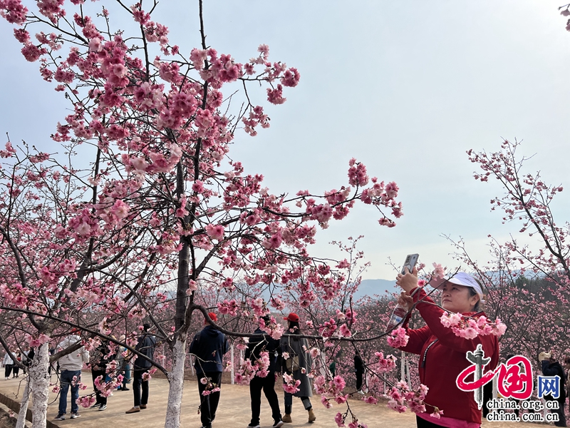 宜良縣山后櫻花谷面積有4000多畝,是目前云南最大的櫻花種植基地之一。這里有櫻花樹(shù)37萬(wàn)株,每年12月底至次年4月漸次盛放,漫山遍野的花海如云似霞,美不勝收,60多個(gè)品種的櫻花前后花期長(zhǎng)達(dá)4個(gè)多月,仿佛給山坡系上了一條彩色的飄帶,為市民游客持續(xù)送上春之城的美麗花景。宜良縣副縣長(zhǎng)華濤介紹,這里曾是一片貧瘠的石漠化荒山,經(jīng)過(guò)10多年的生態(tài)改造修復(fù),這片石漠化荒山煥發(fā)新顏,成為昆明周邊游的網(wǎng)紅打卡地,千畝櫻花也成了當(dāng)?shù)卮迕裨鍪罩赂坏摹靶腋Vā?。(王建平?/p>