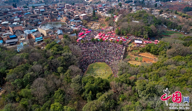百里不同風,千里不同俗。云南彌勒市陶瓦村的“祭龍節(jié)”剛結束,農歷二月初三(2月22日),西一鎮(zhèn)起飛村委會紅萬村的“祭火節(jié)”在萬眾矚目之下火熱開場,當天,來自全國各地的數(shù)萬名游客紛至沓來,共享萬人歡騰的祭火盛宴。