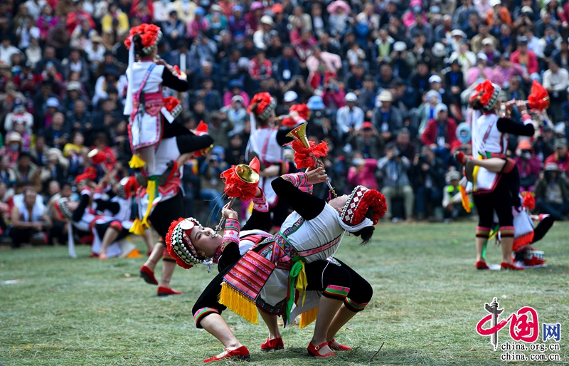 傍晚時分,長長的祭火隊伍把取得的新火種,帶到祭火廣場。熊熊的篝火點燃了人們的激情,歡騰的大三弦響起,阿細男女青年跳起了歡快的阿細跳月。來自全國各地的游客也被現(xiàn)場的氣氛所感染,參與到狂歡的隊伍中,大家圍火歡跳,迎來了祭火活動的最高潮?,F(xiàn)場頓時成了歌的世界,舞的海洋,整個紅萬村萬人齊歡騰。