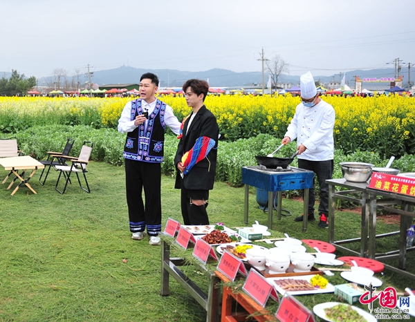 演員劉熙墨對(duì)美食制作過程進(jìn)行了解說并對(duì)南華美景進(jìn)行了推介。他說,如果看倦了油菜花,南華的其他地方也會(huì)帶給你不一樣的體驗(yàn)。德茂溫泉休閑度假莊園依山傍水,可以泡掉疲憊,泡掉煩惱,3月10日的櫻花節(jié),歡迎大家到德茂一品滿樹爛漫,景色美不勝收;擁有140年歷史的靈官橋兩岸的河堤河道已經(jīng)被提升改造,沿河植千株垂柳,橋頭現(xiàn)亭臺(tái)樓閣,恢復(fù)了“平橋煙柳”景致,又是一個(gè)休閑娛樂的好去處;漫步在兩旗海濕地公園幽靜整潔的小路上,沿湖而行,湖光山色盡收眼底。