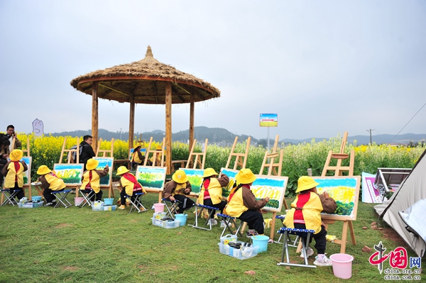 春風(fēng)吹拂,花浪翻滾,清香四溢,油菜花田間,“田間教學(xué)”活動(dòng)正在上演,老師帶領(lǐng)學(xué)生以大自然為伴,在油菜花海中作畫,引領(lǐng)青少年從學(xué)中思、在思中悟、從悟中干,傳承農(nóng)耕文化,關(guān)注自然生態(tài)。