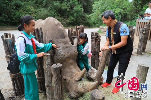 此外,游客還可以信步于景區(qū)內,與犀牛近距離接觸,合影慵懶的小蜂猴、可愛的小熊貓、俏皮的長尾猴、慢吞吞的娃娃魚、婀娜多姿的丹頂鶴,漫步森林棧道,穿過桫欏世界,體驗人與自然和諧相處,探秘“天賜普洱”的生物多樣性;也能走進北緯22度森林農場,在滿是田園風光的農莊里捉泥鰍、采摘蔬果,了解土地、蔬菜的故事和發(fā)展史,讓每一位前來體驗研學活動的游客,游有所學,游有所樂。(戴錚 普洱太陽河森林公園供圖)