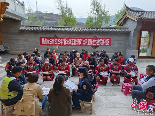 近期,云南省昆明市尋甸回族彝族自治縣倘甸鎮(zhèn)以普法強基補短板專項行動為契機,全面推進普法走深走實,組織普法隊伍走進魯嘎彝族村,以貼近群眾的方式開展“雙語普法”。