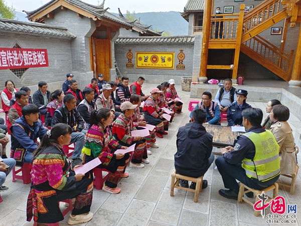 為全面守住村民“錢袋子”,筑牢“生命線”,派出所為村民講解如何防止電信詐騙,黃賭毒的危害,治安管理等相關法律知識;交警中隊就酒駕危害,佩戴頭盔等交通安全知識進行全面講解。司法所為少數民族村民講解《婚姻法》、早婚早孕等方面的知識,倡導樹立正確的婚育觀,力促形成新時代文明婚育新風尚。